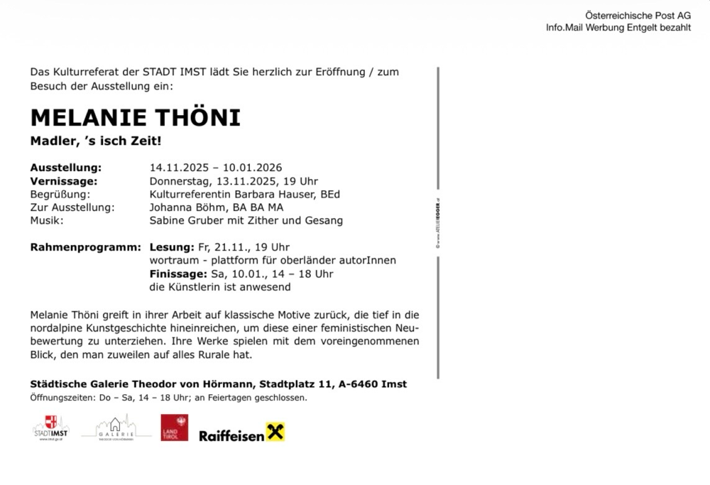 Einzelausstellung in der Theodor von Hörmann Galerie in Imst. [Link]